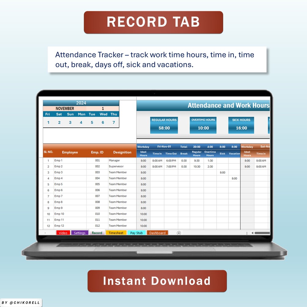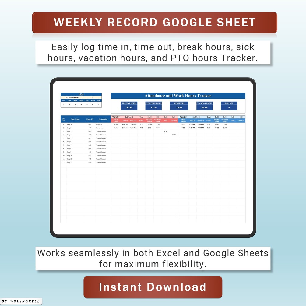 👥 Multiple Employees Support – manage all your employees on one convenient sheet! (1000 Employees)
